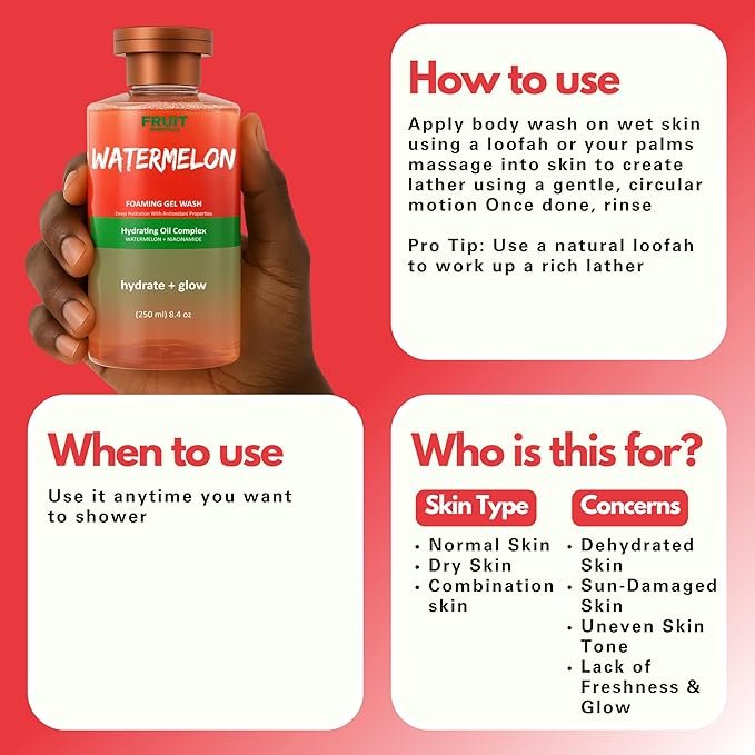 - 🍉 Hydrating Oil Complex: Enriched with watermelon and niacinamide for deep hydration, leaving your skin soft, smooth, and refreshed.