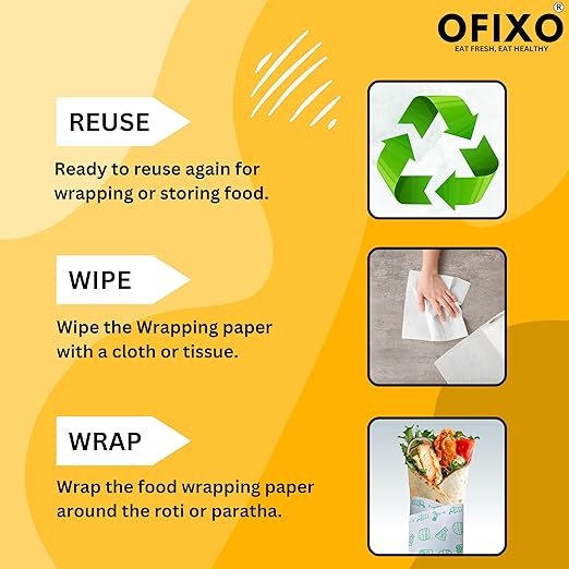 - MULTI-PURPOSE :— OFIXO Food Wrapping Paper offers Longer Freshness to the Food and it protects the Food’s moistness, Aroma and Flavours of food and keeps food bacteria-free for longer. Use for wrapping, baking, covering leftovers, storing and much more. Moisture lock to keep fruits, veggies and meat fresh.